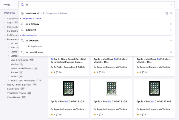 This example shows how to integrate Autocomplete with InstantSearch.js.