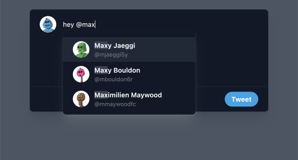 This example shows a Twitter compose box with mentions typeahead powered by Autocomplete.